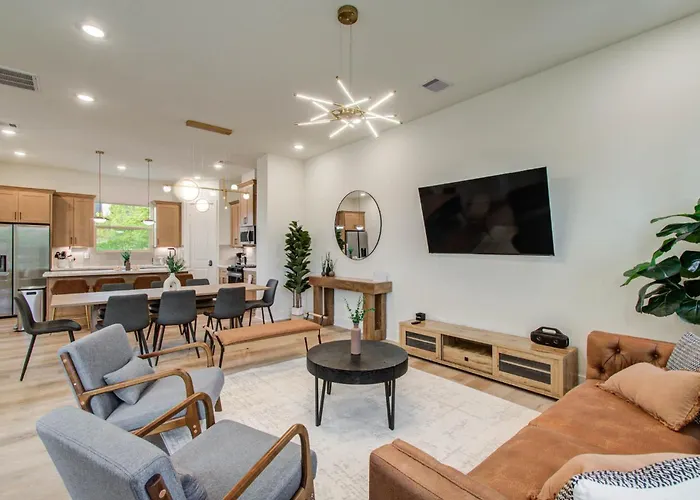 Nestled in a vibrant district, Chic & Central 3Bd Townhouse Mins To Dt & Midtown offers a sophisticated retreat for travelers seeking both convenience and comfort. Just 6 km from the bustling Ensemble/HCC, this townhouse makes an ideal base for both business and leisure guests wanting to explore the heart of the city and its cultural hotspots. Strategically positioned, Chic & Central 3Bd Townhouse Mins To Dt & Midtown provides convenient access to the city's major attractions, shopping venues, and art districts. With easy access to public transportation, guests can effortlessly explore the vibrancy of downtown Houston and beyond, making it a perfect choice for any urban adventurer.